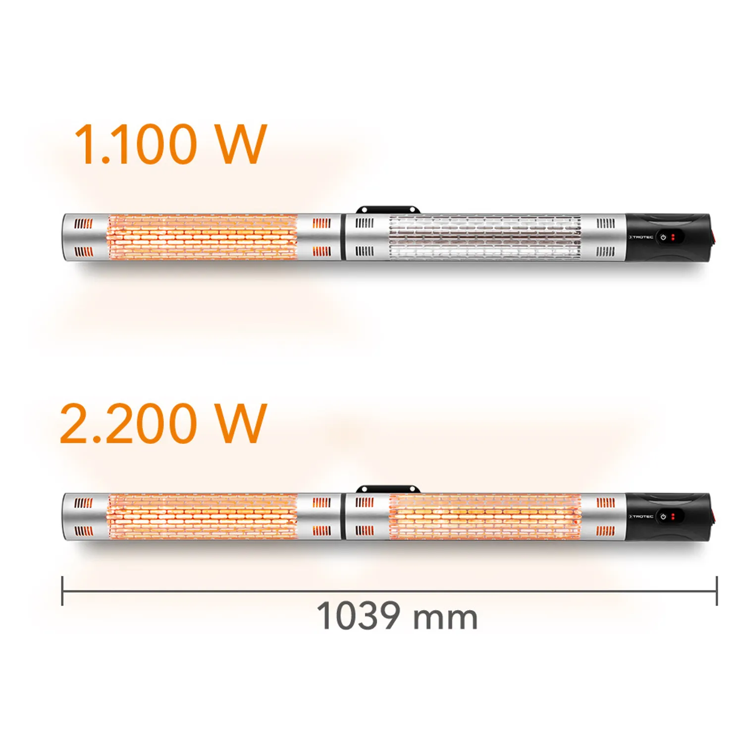 Konventionelle infrarøde varmeapparater uden lavblændingsteknologi udsender ofte et intenst orange-rødligt lys sammen med varmestrålingen, som mange mennesker opfatter som varmt og hyggeligt. Men for at sikre, at omgivelserne ikke oplyses for kraftigt eller endda forstyrres, har IR 2200 fra Trotec to kortbølgede infrarøde rør med lysreducerende low glare-teknologi.